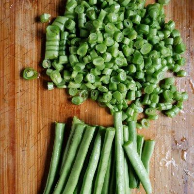 1、四季豆(或豆角、空心菜杆都可以)洗干净切好备用。