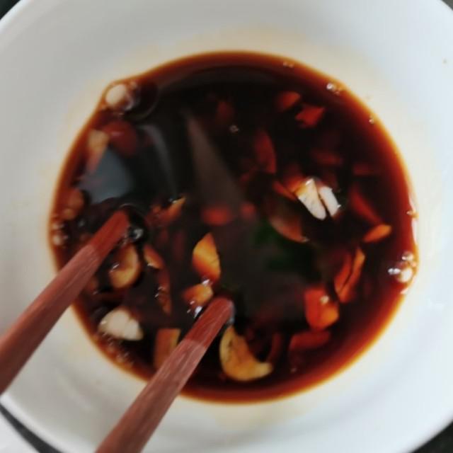 第4步、蒜粒生抽蚝油白糖水生粉搅拌均匀待用。