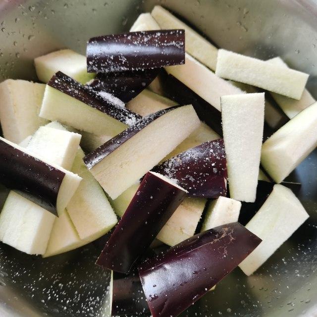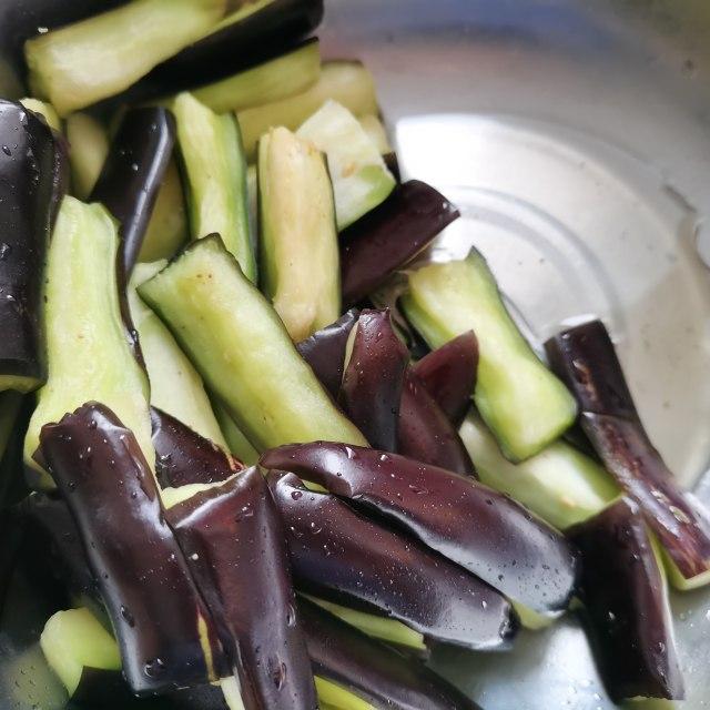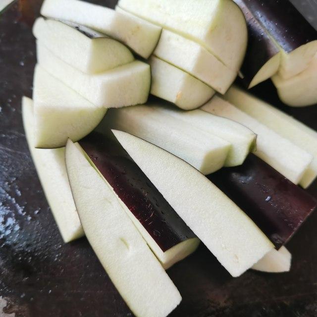 第2步、茄子切条状。