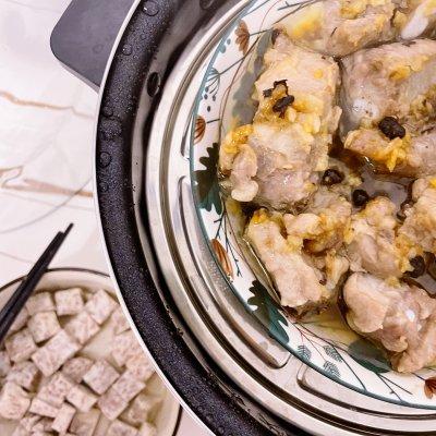 5、香芋蒸好后~换上排骨,蒸15分钟