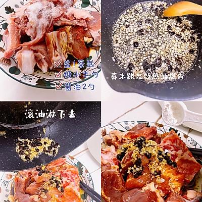 3、如图加料~然后把排骨搅拌均匀腌制